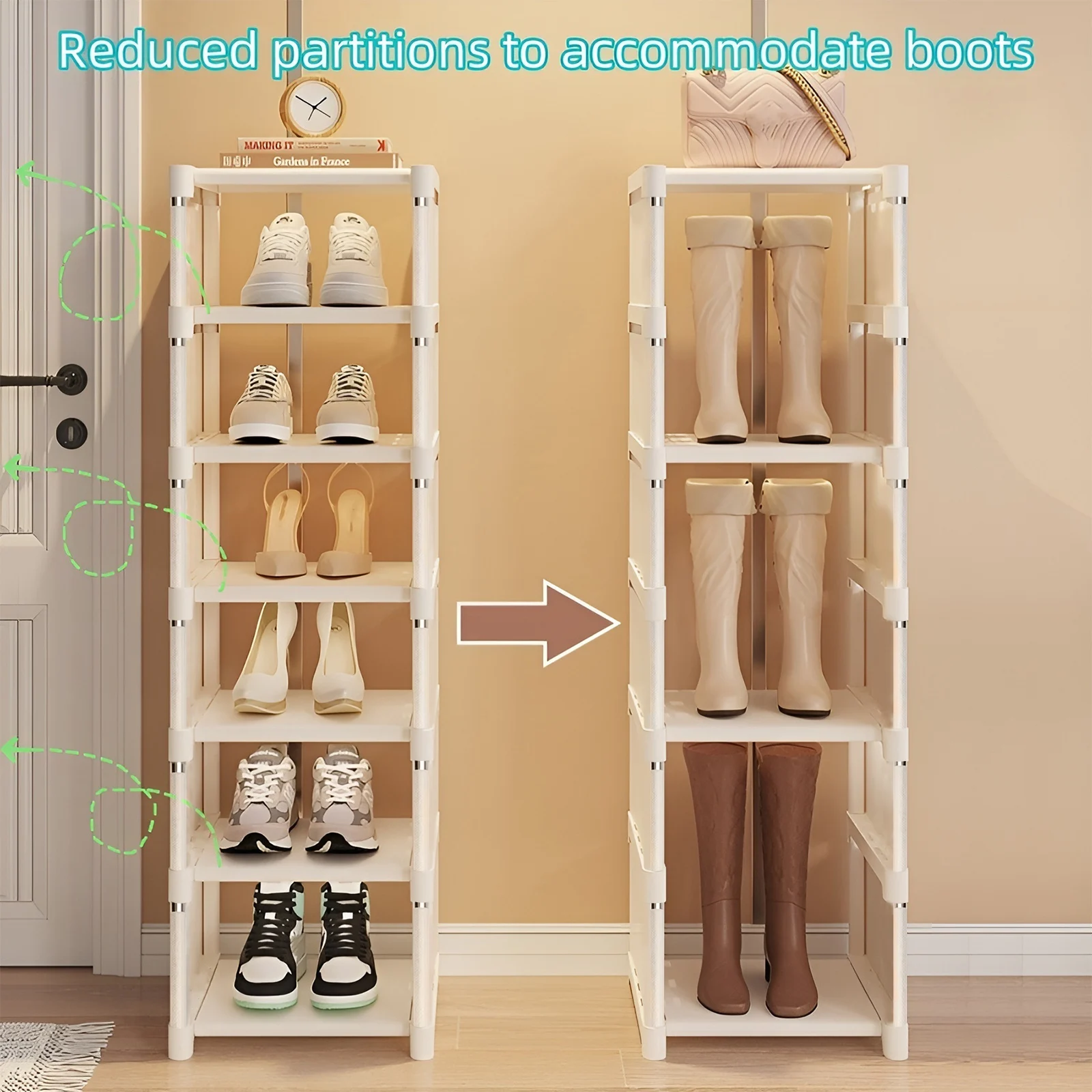* 6–8 layer shoe organizer with metal frame and fabric shelves